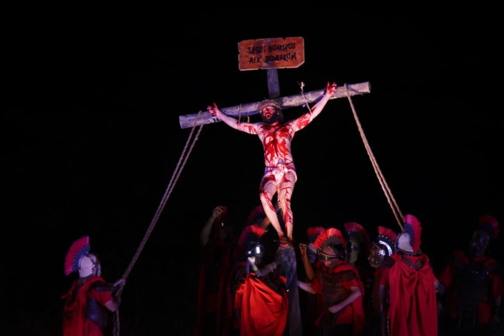 Encenação, realizada a céu aberto, percorre diferentes cenários que representam os últimos momentos de Jesus Cristo