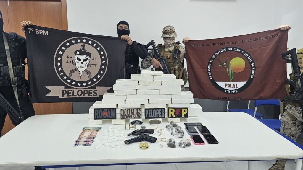 Uma ação integrada entre as polícias Civil e Militar apreendeu 40 quilos de cocaína em Santana do Ipanema, no Sertão de Alagoas, nesta quinta-feira (5). Cinco pessoas foram presas.