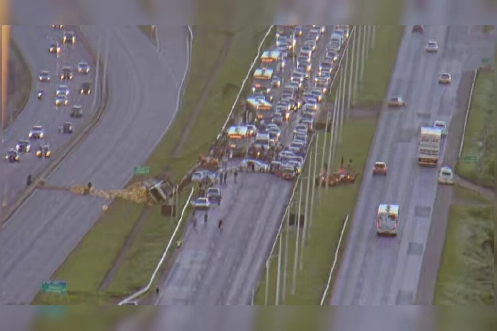 Carreta perdeu controle antes de tombar e causar colisão com 12 carros na Epia Norte. Veja vídeo 30 de março de 2026