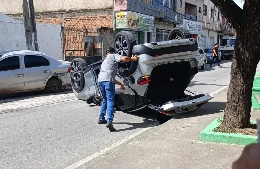 O acidente ocorreu em uma das vias principais da cidade e, embora o impacto tenha sido forte o suficiente para virar o automóvel da jovem, a ocorrência resultou apenas em prejuízos financeiros para os envolvidos.