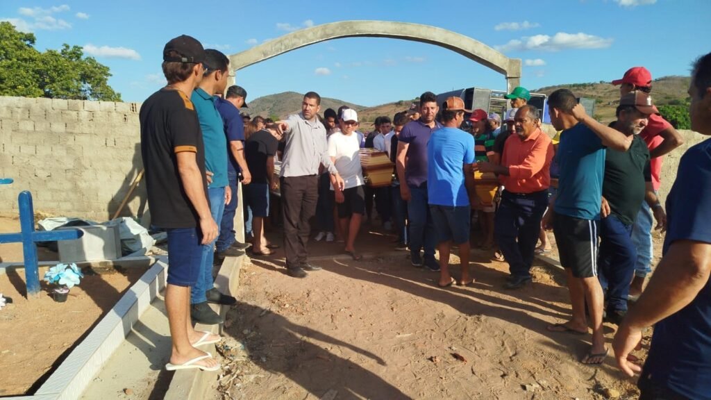 Familiares, amigos e moradores da comunidade acompanham a despedida, que foi marcada por forte comoção. Adelmo era pai de José Caio e avô de Maria Manuella.
