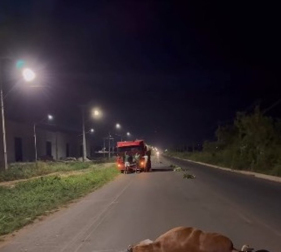 Após o segundo sinistro, populares, com o auxílio de um veículo, puxaram o animal para as margens da rodovia, liberando a via.
