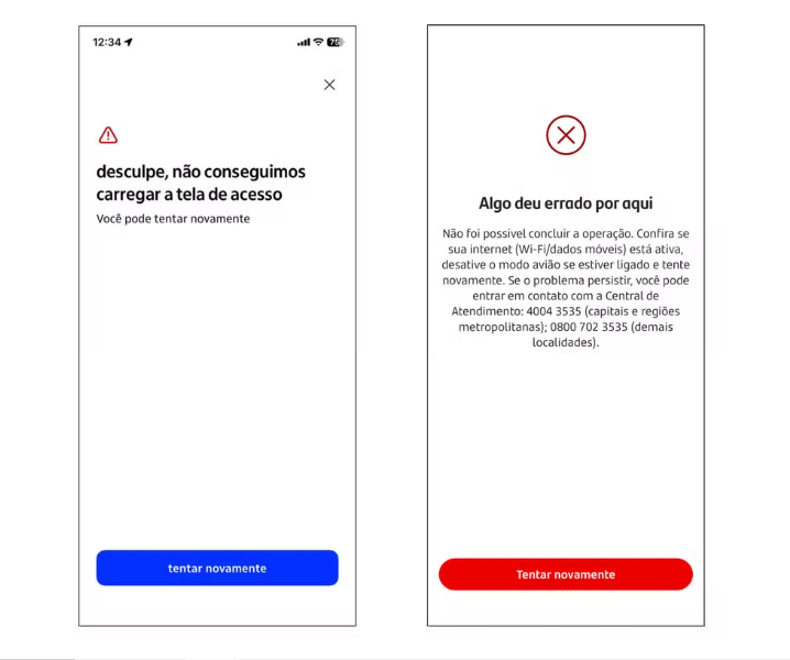 As notificações de erro se concentraram até as 12h e incluem relatos de falhas no login, lentidão e indisponibilidade de serviços, o que gerou uma onda de críticas nas redes sociais.