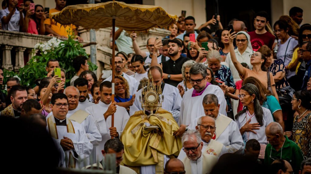 A Igreja Católica realiza a celebração de Corpus Christi no próximo dia 19 de junho em todo o mundo. A solenidade lembra a presença real de Cristo na Eucaristia e tem como uma de suas principais características as ornamentações religiosas desenhadas pelas ruas das cidades. A programação na Arquidiocese de Maceió começa nesta segunda-feira (16), com o Tríduo Preparatório e refletirá o tema: “Eucaristia, Vida e Esperança para o mundo”.