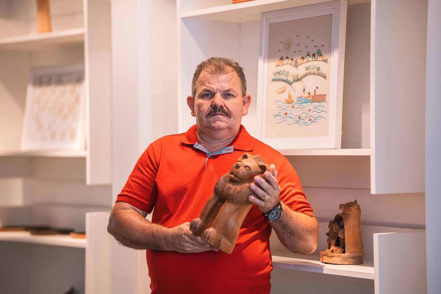 A partir daí, o que era apenas um passatempo se transformou em profissão. Hoje, mais de 40 anos depois, André mantém viva a tradição familiar esculpindo animais em madeira, especialmente felinos, que se tornaram sua marca registrada.