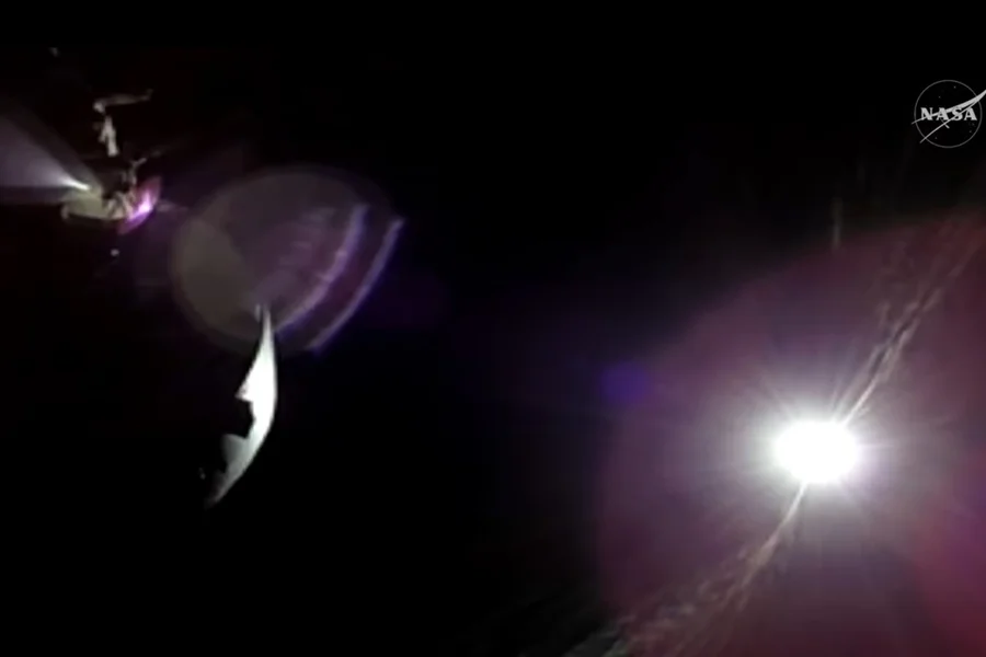 O eclipse começou por volta das 21h35 (no horário de Brasília), cerca de 90 minutos após a nave Orion spacecraft atingir o ponto mais distante do planeta, a aproximadamente 406 mil quilômetros. A distância supera em cerca de 6,4 mil quilômetros o recorde anterior da missão Apollo 13.