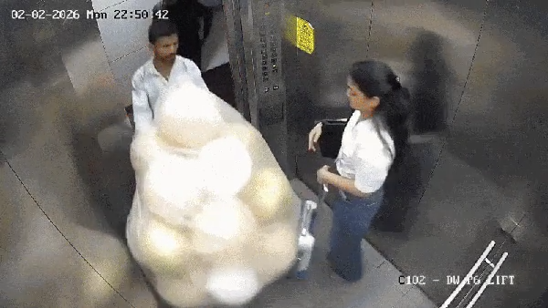 Segundo o jornal Times of India, as imagens mostram um funcionário de uma loja entrando no elevador com balões, junto de uma estudante de 21 anos. Em seguida, os balões explodem, lançando chamas. Na sequência, os dois saem correndo do local.