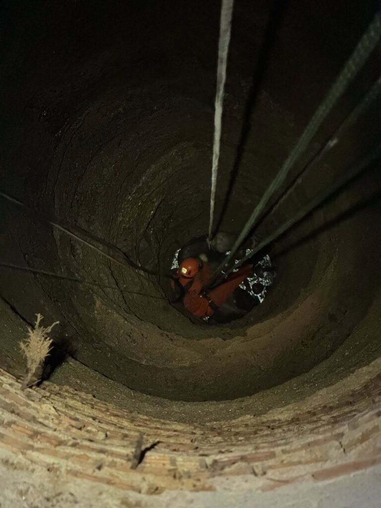 Segundo a corporação, uma guarnição de salvamento foi acionada para a ocorrência, que exigiu técnica e cautela na montagem dos equipamentos devido à profundidade e às condições do local.