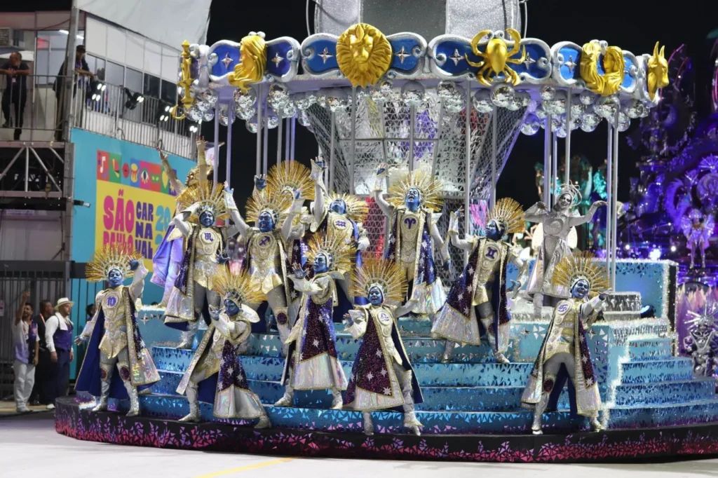 A azul e branco da zona leste aumentou o atraso no cronograma de desfiles após um de seus carros derrubar óleo no chão do Anhembi. A equipe técnica da Liga-SP (Liga Independente das Escolas de Samba de São Paulo) usou areia para tentar contornar o problema e garantir a segurança dos desfilantes da próxima escola, a Rosas de Ouro, que acabou entrando quase uma hora depois do horário previsto.