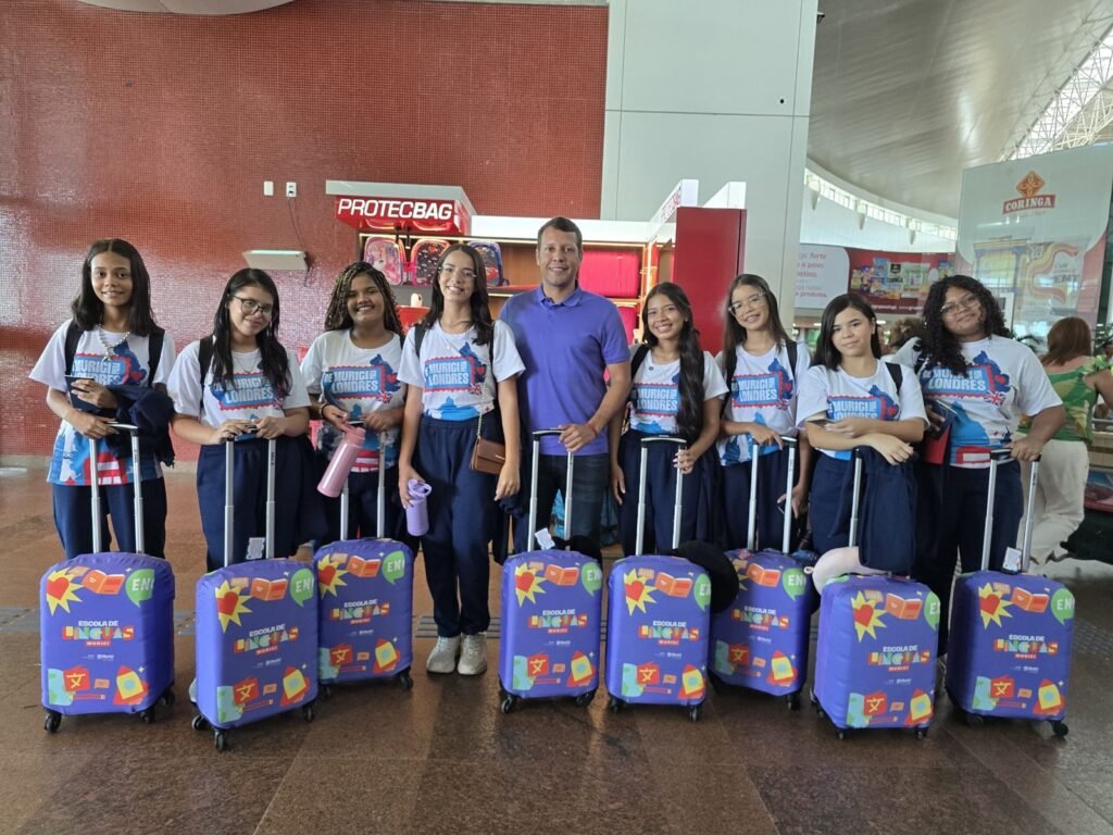 Mais um grupo de estudantes da Escola de Línguas de Murici embarcou neste sábado (14) com destino a Londres, na Inglaterra, para viver uma experiência cultural e aprimorar o inglês na terra do Rei Charles. O momento do embarque foi marcado por muita emoção dos familiares no Aeroporto Zumbi dos Palmares.