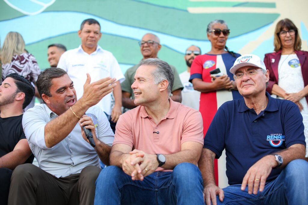 “Podemos fazer uma ponte ligando Japaratinga a Porto de Pedras, outra do Passo de Camaragibe até a Barra de Santo Antônio. Isso vai garantir uma integração de toda a Tegião Norte do estado”, defendeu Renan Filho, ao lado do governador Paulo Dantas (MDB), do senador Renan (MDB), e do prefeito de Maragogi, Daniel Vasconcelos