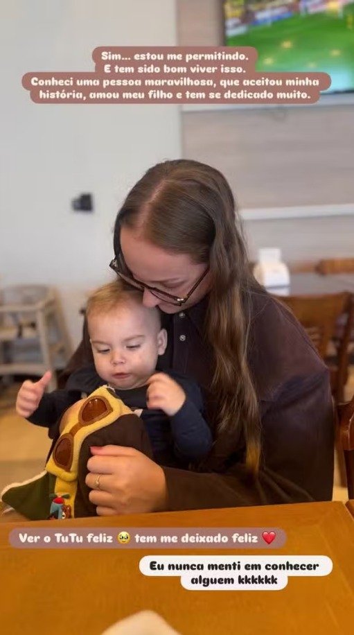 “Sim… estou me permitindo. E tem sido bom viver isso. Conheci uma pessoa maravilhosa, que aceitou minha história, amou meu filho e tem se dedicado muito. Ver o TuTu feliz tem me deixado feliz. Eu nunca menti em conhecer ninguém”, escreveu.