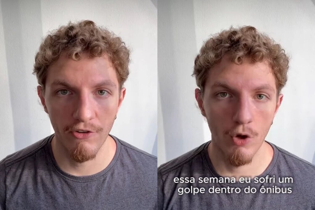 Na gravação, Guilherme Giaretta disse que voltava do trabalho de ônibus quando um homem o cutucou e apontou para suas costas. O suspeito tinha jogado um líquido pastoso, de consistência similar a de vômito, na roupa do influenciador.