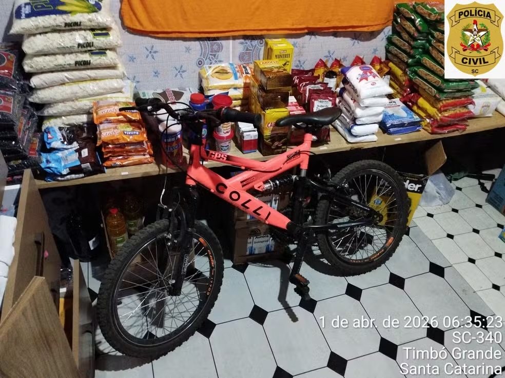 Grande quantidade de alimentos e bicicleta de tamanho infantil foram localizadas na casa do suspeito de exploração sexual — Foto: Polícia Civil/ Divulgação
