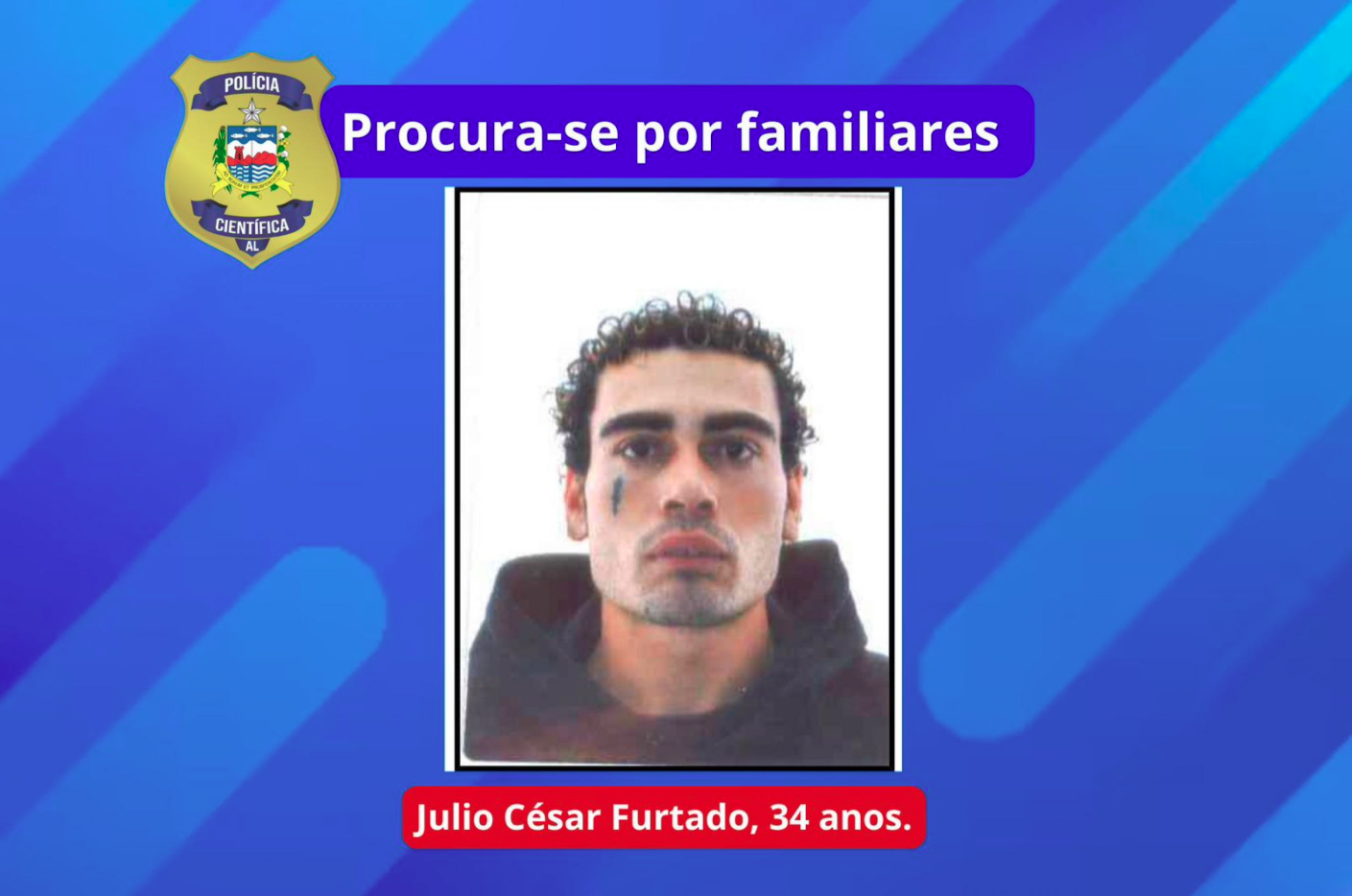 O Instituto Médico Legal (IML) de Arapiraca convoca publicamente os familiares de Julio César Furtado, de 34 anos, para que compareçam à sede do órgão, no Agreste alagoano. A medida é necessária para a formalização da retirada e a realização do sepultamento, após a identificação oficial do corpo.