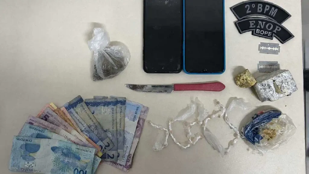 Entre os detidos está um homem conhecido pelo apelido de “Bagdá”, apontado em ocorrências anteriores como figura recorrente no tráfico local.