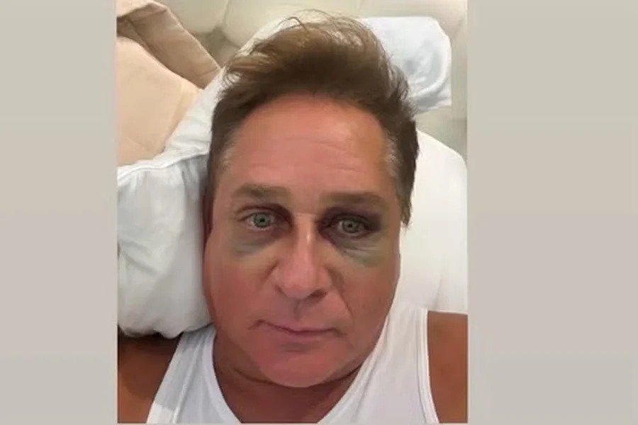 Nas imagens, é possível ver que os hematomas nos olhos de Leonardo estão diminuindo, apesar de aparentes. Nas redes sociais, Poliana Rocha atualizou o estado de saúde do marido.