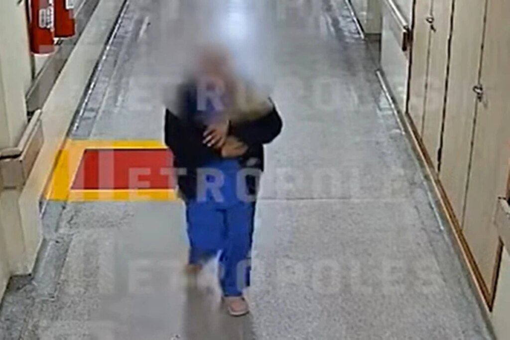 Eliane foi filmada carregando o bebê no colo, enquanto circulava dentro do hospital. Na primeira gravação, a técnica de enfermagem é vista caminhando por um dos corredores da unidade de saúde.