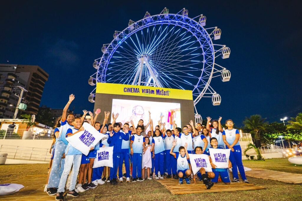 A primeira-dama de Maceió, Marina Cândia, proporcionou um momento especial para alunos da rede municipal de ensino ao levá-los para um passeio na Roda Gigante, na orla da capital, seguido de uma sessão de cinema ao ar livre com a exibição do documentário Vestir Massayó.
