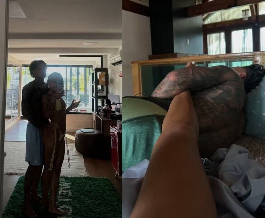 Na publicação, a jovem escreveu “Meu marrento”, em referência a uma música do MC. Nas imagens, ela aparece em uma foto colada com ele, os dois em pé na frente do espelho do quarto dele, em sua mansão Recreio dos Bandeirantes, Zona Sudoeste do Rio de Janeiro.
