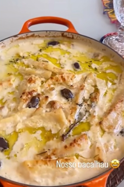 No Instagram, Michelle mostrou a refeição: batatas ao murro, arroz e bacalhau.