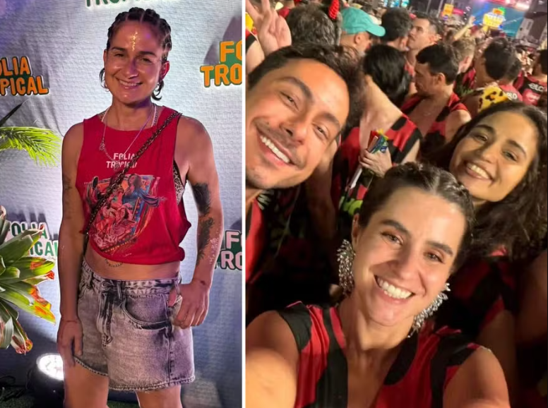 Já Nanda, de 39 anos, apareceu em um único registro do carnaval, pulando com amigos entre os pipocas de um trio elétrico em Salvador.