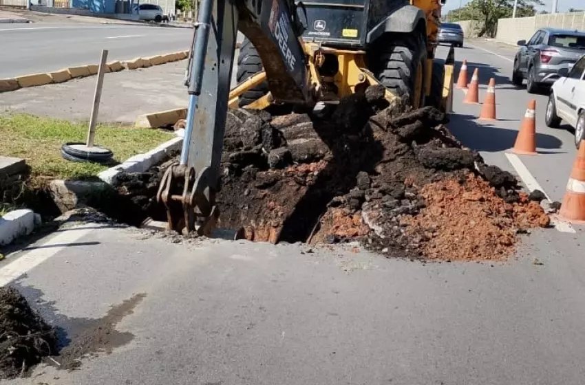 Obra de drenagem interdita trecho da Av. Assis Chateubrand. Foto: Seminfra