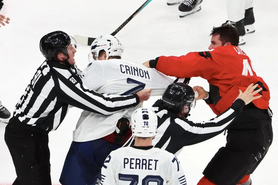 Cenas lamentáveis marcaram a partida entre França e Canadá, no hóquei de gelo masculino, disputada neste domingo (15/2) durante os Jogos Olímpicos de Inverno Milão-Cortina. Faltando menos de sete minutos para o fim do terceiro quarto, o francês Pierre Crinon e o canadense Tom Wilson iniciaram uma briga.