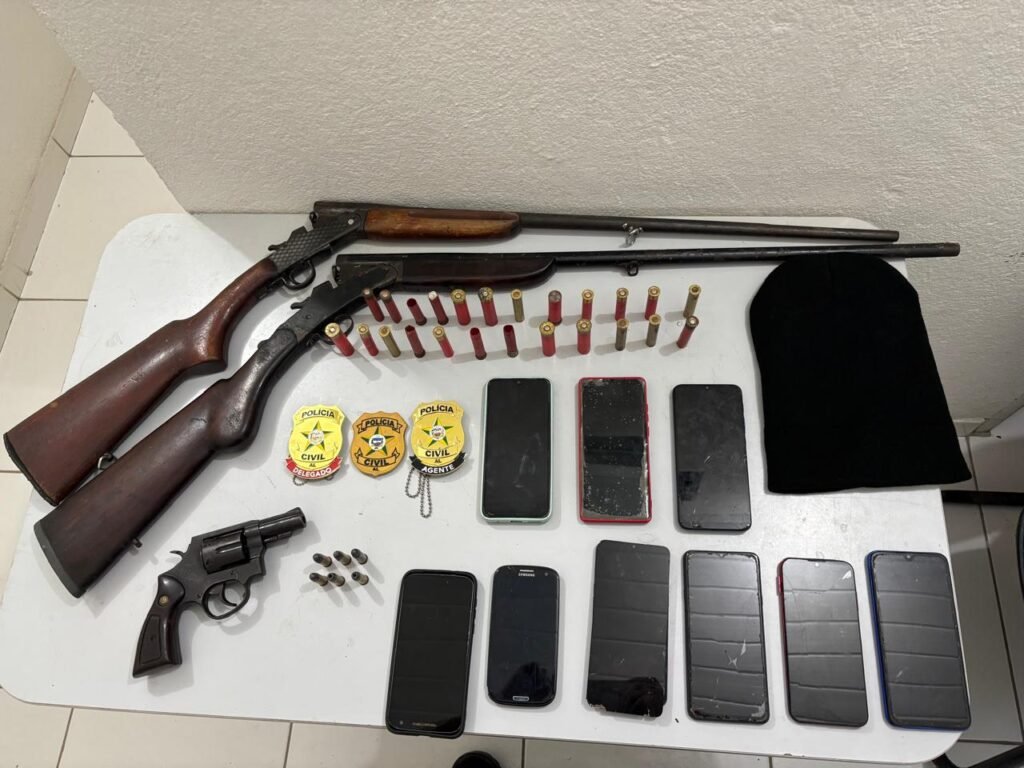 Durante as buscas, os policiais localizaram um revólver, possivelmente utilizado no homicídio, além de duas espingardas, munições e uma balaclava. Diversos aparelhos celulares de origem desconhecida também foram recolhidos. De acordo com o delegado titular: