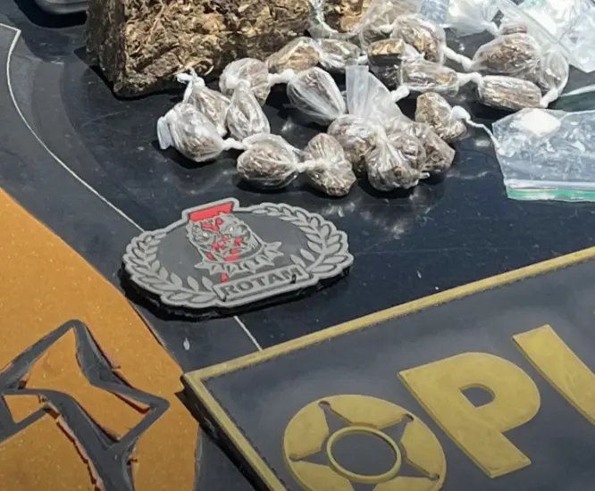 A equipe realizava patrulhamento, quando percebeu que um indivíduo tentou esconder um objeto ao notar a presença dos agentes e tentou deixar o local. Ele foi abordado e, nas proximidades de onde estava, os policiais encontraram entorpecentes.