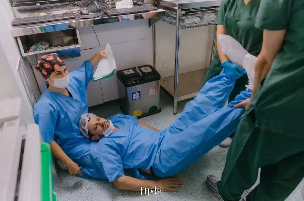 A cena de um pai desmaiando e sendo amparado pela equipe médica logo após o nascimento da segunda filha em um hospital de Criciúma, no Sul de Santa Catarina, viralizou nas redes sociais.