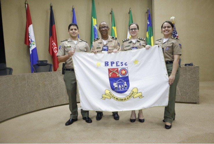 O Batalhão de Polícia Escolar (BPEsc) representou a corporação alagoana no encontro com uma comitiva liderada pela comandante da unidade, major Noêmi Firmo, acompanhada pelo subcomandante, major Samuel Cruz, além de oficiais da unidade.