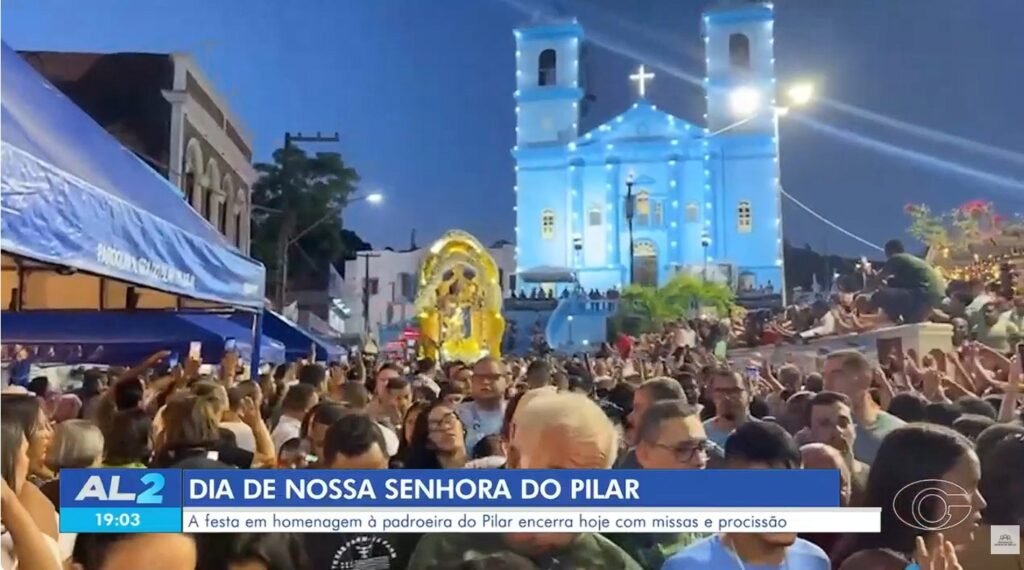 Uma multidão de fiéis participou, nesta terça-feira (2), da procissão de Nossa Senhora do Pilar, padroeira do município de Pilar, na Região Metropolitana de Maceió, Alagoas. O evento marcou o ponto alto da programação religiosa dedicada à santa.