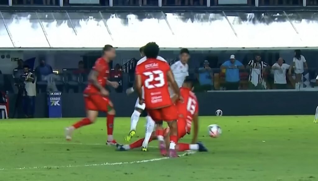 Mas, além da goleada e da ótima exibição do Peixe, um lance chamou a atenção e foi protagonizado por um jogador alagoano. Islan, nascido em Maragogi e que vestiu a camisa do CSA em 2025, cometeu falta dura no meio de campo e o lance viralizou nas redes.
