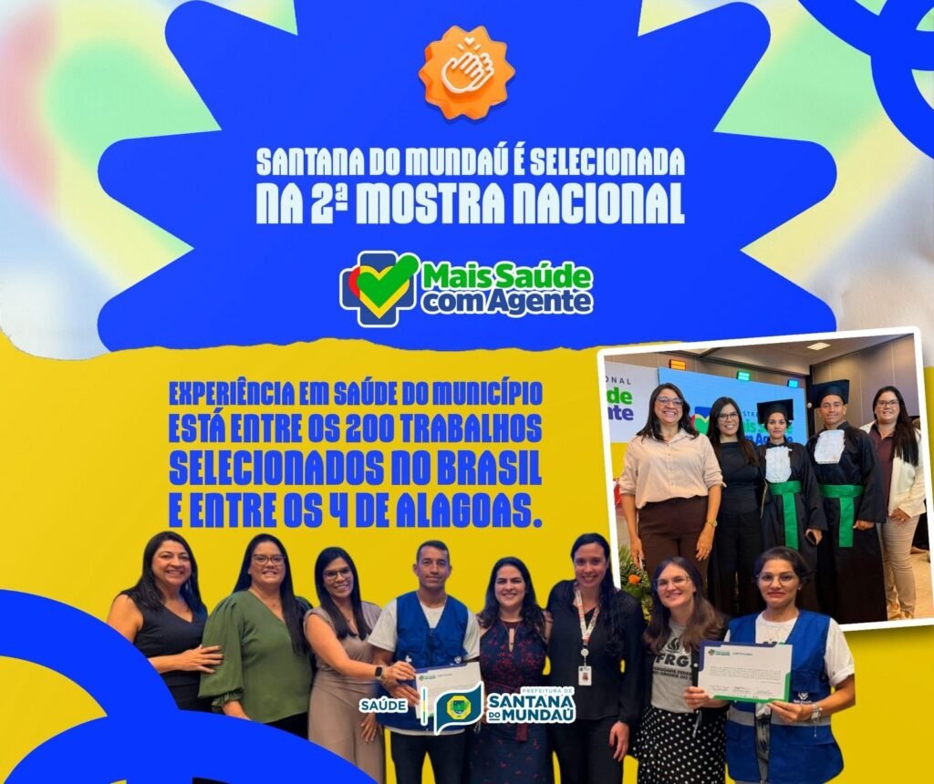 Com o projeto “Duas Visões, Um Cuidado: Integração entre ACS e ACE”, Santana do Mundaú foi um dos quatro municípios alagoanos selecionados para a 2ª Mostra Nacional Mais Saúde com Agente, que aconteceu nos dias 18 e 19 em Brasília. Com 200 trabalhos selecionados em todo o país, o evento celebra experiências de territorialização integrada entre Agentes Comunitários de Saúde (ACS) e de Combate às Endemias (ACE).