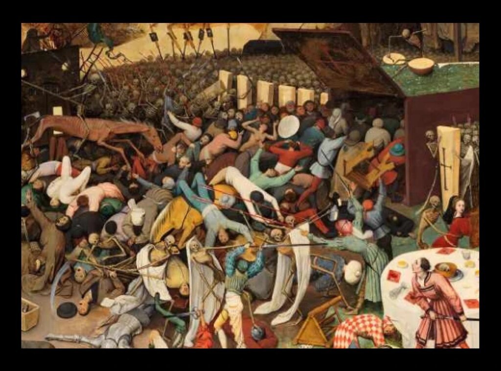 Alguma justificativa aceitável para o que fizeram Donald Trump e Benyamin Natanyahu até agora? Em momentos assim, sempre há os “contabilistas da morte”, a deitar um olhar revisionista sobre a história, não raro para absolver moralmente os que ordenaram matanças: “Ah, sem tal morticínio, tudo poderia ter sido ainda pior”; “sem as bombas em Hiroshima e Nagasaki, teria morrido muito mais gente”; “sem o bombardeio de Dresden, os alemães teriam resistido mais tempo…” Há os que realmente acreditam que “a guerra é a higiene do mundo”. Sempre há alguém para pintar a sua própria versão de “O Triunfo da Morte” (ilustração; detalhe do quadro), qual um Pieter Bruegel, o Velho, mas movido pelo otimismo da destruição…