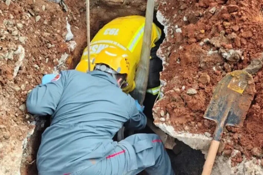Acidente aconteceu durante obra de rede de esgoto em Porto União após um desmoronamento de terra