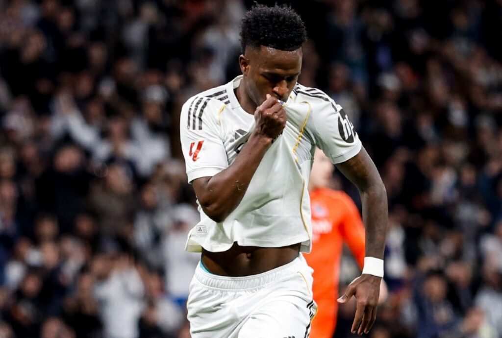 Dando continuidade na 24ª rodada do Campeonato Espanhol neste sábado (14/2), o Real Madrid recebeu a Real Sociedad no Santiago Bernabéu. Com dois gols de pênalti marcados por Vini Jr., os merengues golearam por 4 x 1. Gonzalo García e Valverde completaram para os donos da casa. Oyarzabal descontou.
