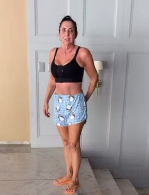 Ela explicou o que foi feito. “Vou falar para vocês o que fiz. O abdômen, a mama com silicone. Não gosto de peito grande, então coloquei do tamanho que ele era, que eu amei. Ficou parecendo peitinho de mocinha. E lipo nos braços”.